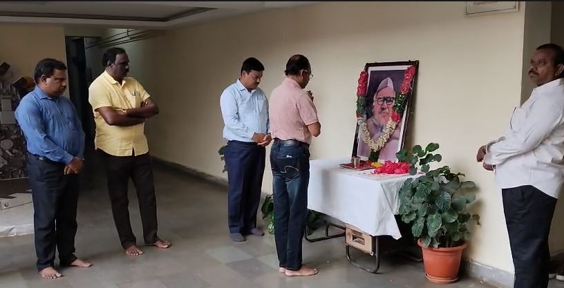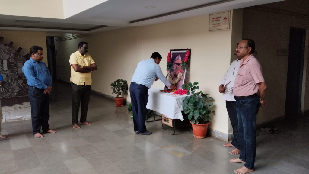 The employees of the University of Hyderabad (UoH) paid tributes to Babu Jagjivan Ram on his death anniversary on July 6, 2025 in the administrative building of the University. Dr. Devesh Nigam, Registrar, Shri A. Praveen Kumar Prasad, Joint Registrar, Finance & Accounts and other officials, and administrative staff paid floral tributes and observed two-minute silence as a mark of respect to the great leader.