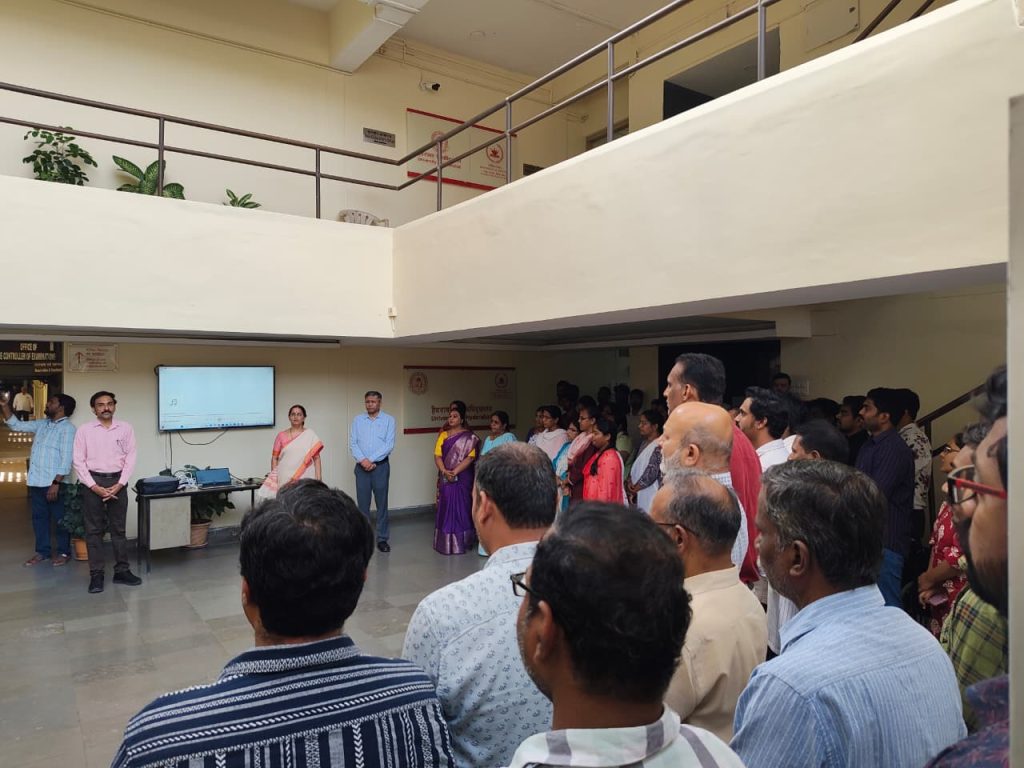 The University of Hyderabad family feels immense pride and emotion as we commemorate 150 glorious years of Vande Mataram, our beloved national song in the presence of Prof. J Anuradha, i/C Vice-Chancellor, Shri B Srinivas, Finance Officer and i/C Registrar, faculty, staff.