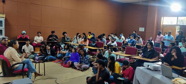 The performance was followed by an open-house discussion moderated by Dr. A. Suneetha, feminist researcher and activist. A lively exchange unfolded around themes such as masculinities, patriarchy, and the complexities of performing theatre as a Dalit woman.