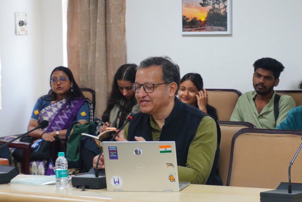 The inaugural address, titled “Sovereignty in Motion: Mobility, Gender, and the Reconstitution of Authority in the Himalayan World,” was delivered by Dr. Aniket Alam (IIIT Hyderabad), who also spoke of his intellectual friendship with Prof. Mukhopadhyay. His lecture examined everyday meanings of sovereignty, arguing that in the Himalayan region authority has historically been shaped more by mobility than by fixity. Challenging mainstream, state-centric frameworks, he emphasized sovereignty as relational and provisional rather than territorially bounded. He further highlighted how Himalayan societies have often been framed as marginal within dominant historical narratives, despite possessing complex social stratifications and political arrangements. Introducing the concept of circulatory sovereignty, he discussed the family as a seemingly stable sedentary unit and examined the roles of religion, borders, and frontiers as delegated mechanisms that demarcated jurisdiction.