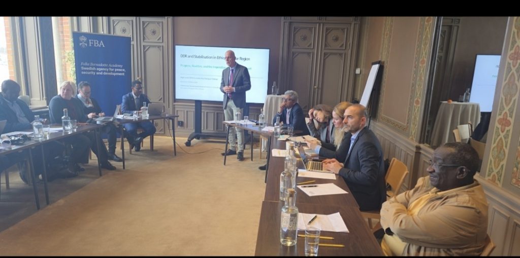 The training brought together senior officials from Ethiopian federal institutions, regional states, and international partners, with facilitation provided by the Folke Bernadotte Academy and UNDP. Sessions covered the UN DDR doctrine (IDDRS), UNDP’s support to peace in Ethiopia, FBA’s work on security transitions within political processes, and regional experiences in DDR implementation.