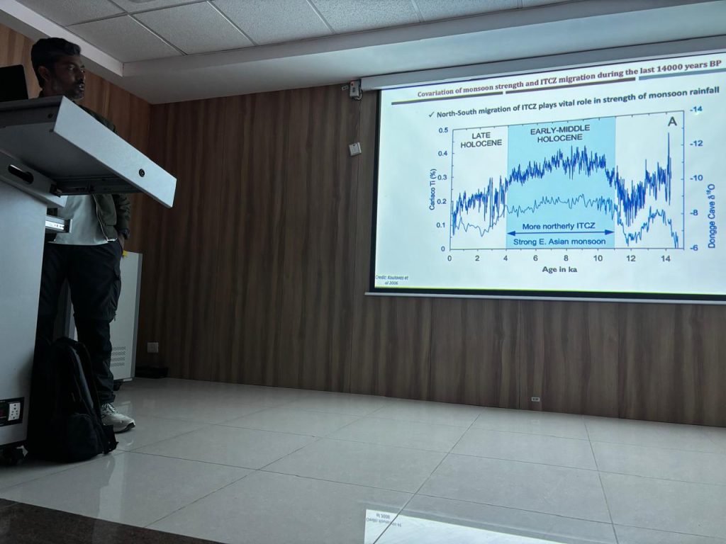 Dr. Reddy also discussed ongoing work on hydroclimate variability across Asia over longer timescales, emphasising the value of geological archives in linking past climate change with human-environment interactions and in better preparing for future climate challenges in monsoon-dependent regions.