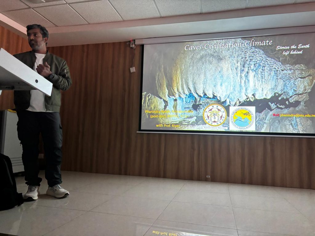 The Centre for Earth, Ocean and Atmospheric Sciences (CEOAS), University of Hyderabad, hosted a special lecture by Dr. Annapureddy Phanindra Reddy, Postdoctoral Research Fellow at the National Taiwan University, Taipei, Taiwan, on 20 February 2026. The lecture, titled “Caves, Civilization & Climate – The Stories Earth Left Behind”, focused on high-resolution speleothem records from peninsular India and their role in reconstructing Indian Summer Monsoon variability over the Late Holocene.