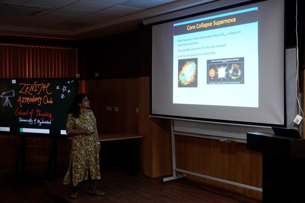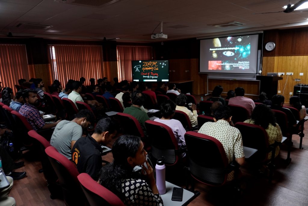 The Zenith Astronomy Club, University of Hyderabad, organized a One Day Lecture Series on September 03, 2025 at the Marie Curie Seminar Hall, School of Physics. The primary objective of the event was to provide students, research scholars, and faculty members with exposure to contemporary developments in astrophysics and astronomy through lectures delivered by distinguished experts. The program commenced with an inaugural session were Dr. Ashoka Vudayagiri, Associate Professor and Faculty Coordinator welcomed the speakers and honored them with mementos.