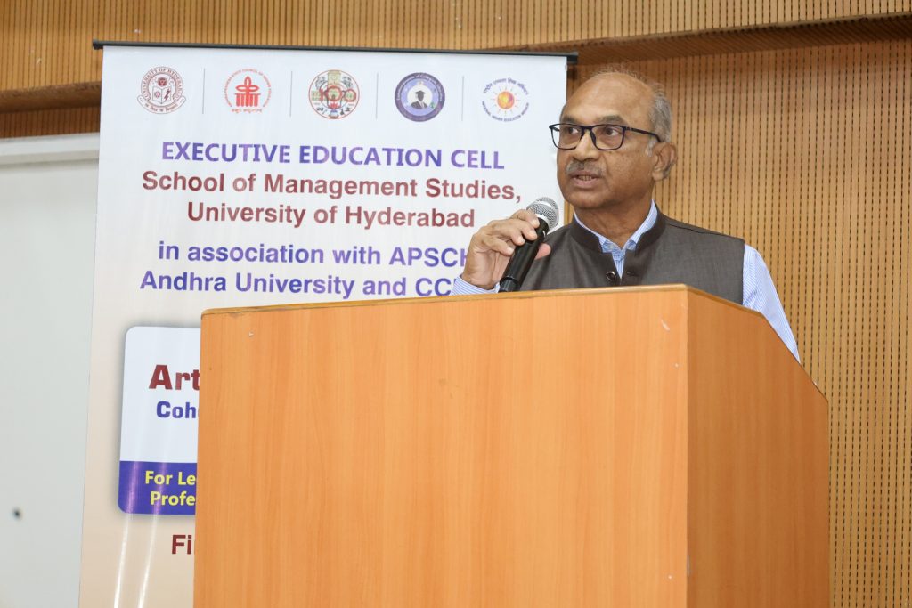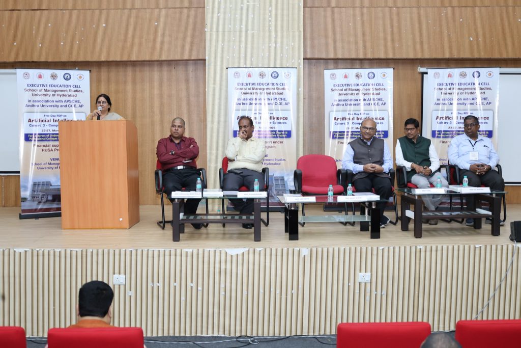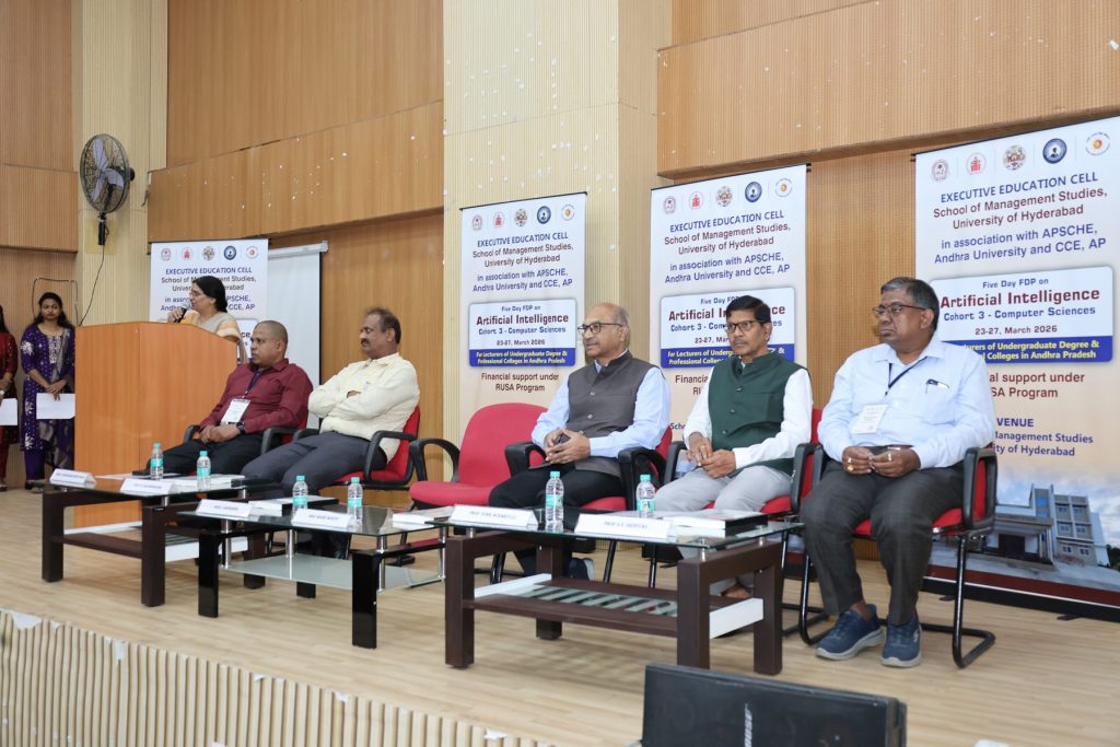 The third cohort of a Five-Day Faculty Development Programme (FDP) on Artificial Intelligence was inaugurated at the University of Hyderabad under the aegis of the Executive Education Cell, School of Management Studies, in association with Andhra Pradesh State Council of Higher Education (APSCHE), Andhra University, Visakhapatnam and the Commissionerate of Collegiate Education (CCE), Government of Andhra Pradesh.