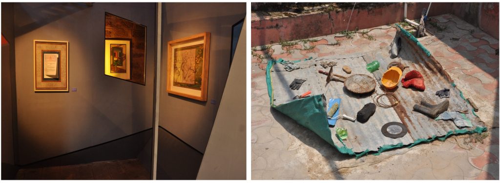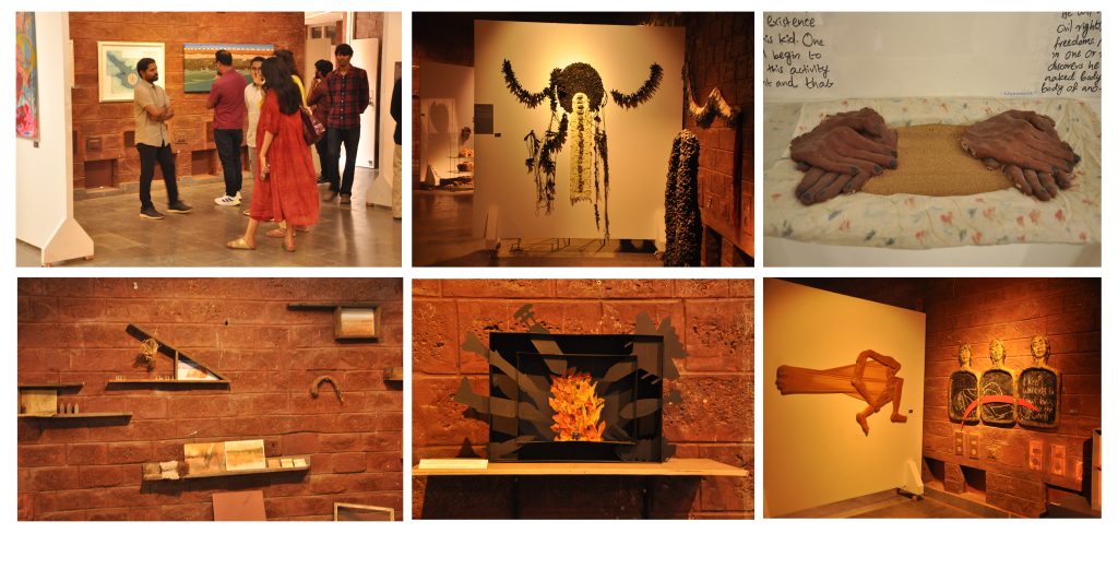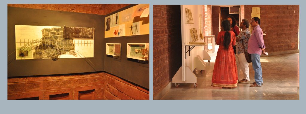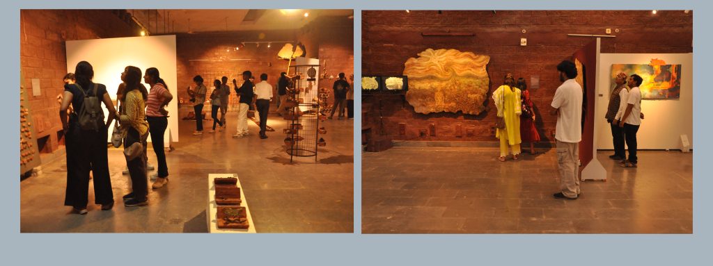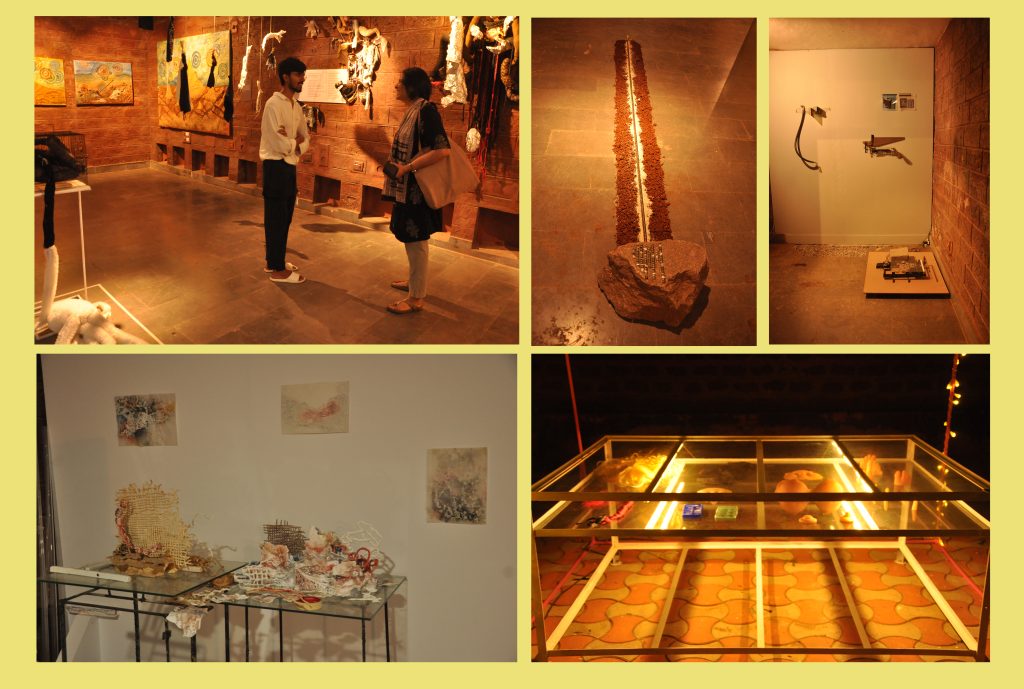 During this event, the studio spaces, corridors and the open courtyards got transformed into exhibition spaces. The purpose of the exhibition was designed as a retrospective show that cumulatively reflects and reviews the works done by the students during the course of their MVA program. The work on the final display allowed the students to engage directly with the demands, challenges and realities of art curation, spectatorship, display conditions, media management, publicity matters and other factors. In addition to the well-crafted individual artistic statements to validate and support the exhibits, the multi-lingual scheduled walk-throughs helped the audience to experience and interact with the show in more meaningful ways.