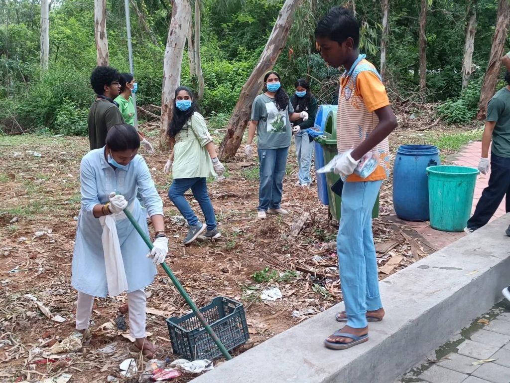 The event also included a clean-up drive, where NSS and Satkarm volunteers collected plastic waste, glass bottles, and other debris from the South Campus shopping complex and School of Life Sciences. The volunteers worked tirelessly to make the surroundings neat and clean, promoting environmental sustainability and ecological balance.