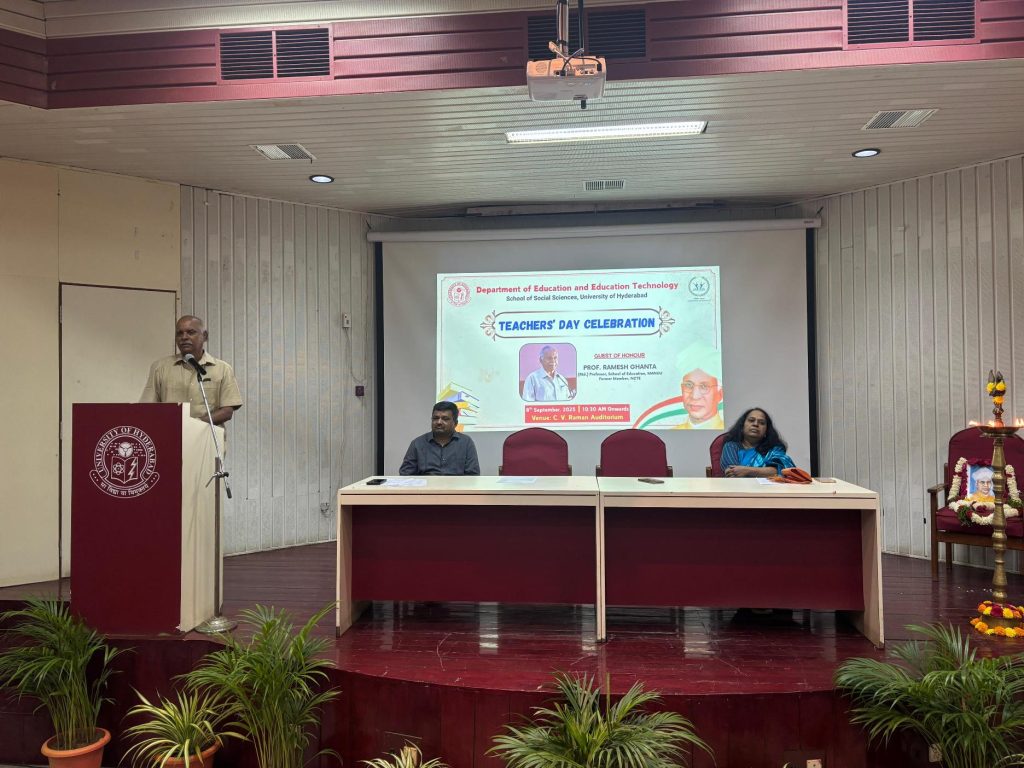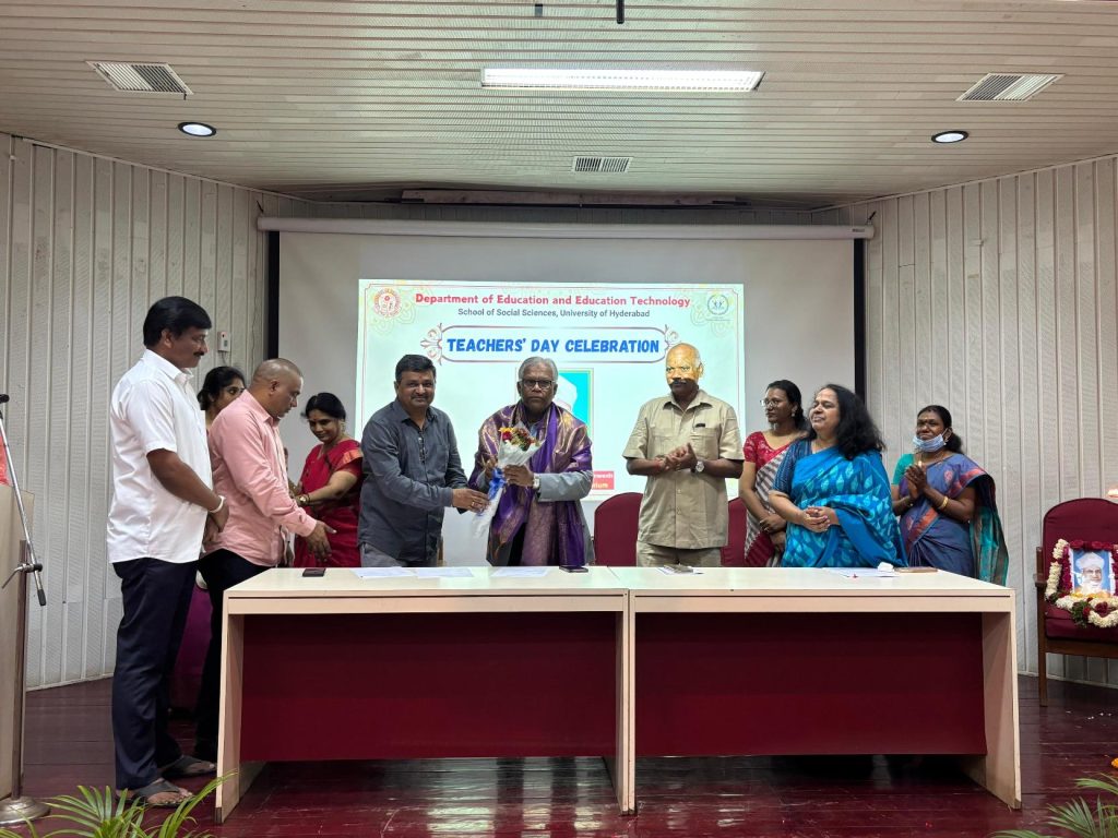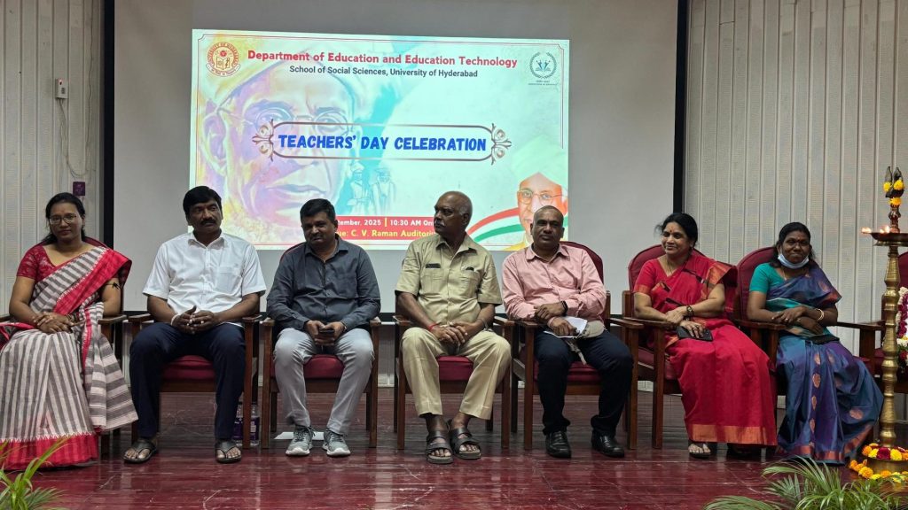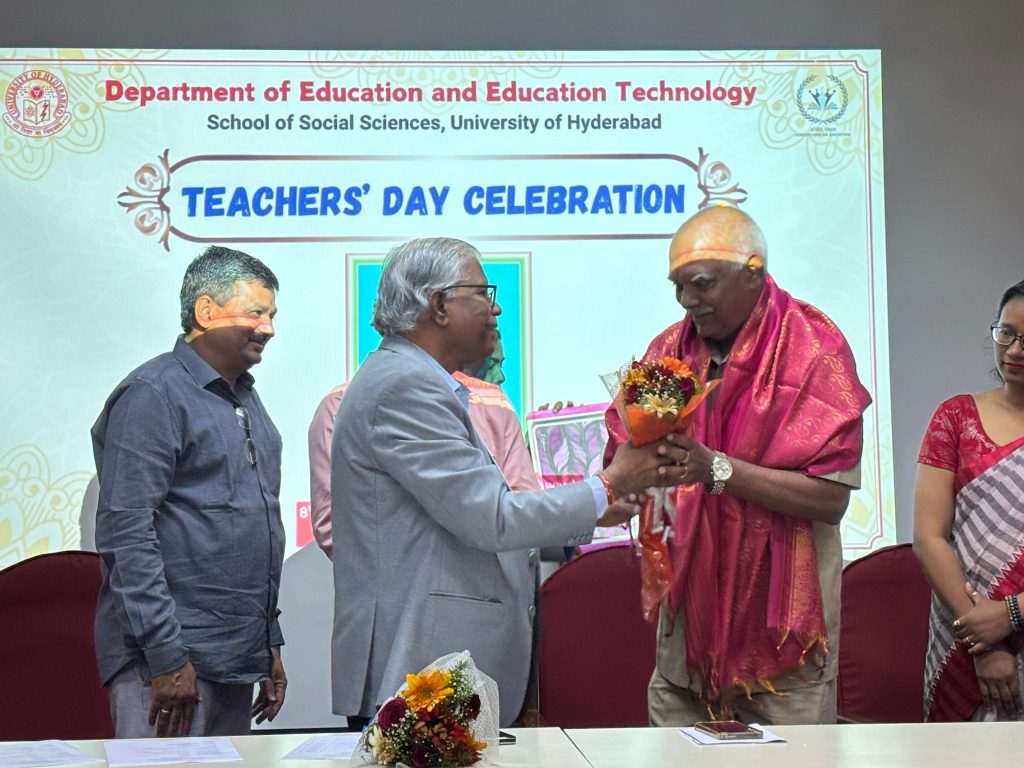 Hyderabad, September 8, 2025- The University of Hyderabad (UoH), one of India’s foremost institutions of higher education, celebrated Teachers’ Day with immense enthusiasm, reverence, and cultural pride. Organized by the Department of Education and Education Technology under the School of Social Sciences, the event witnessed participation from faculty members, research scholars, students, and administrative staff, all coming together to honor the noble profession of teaching.