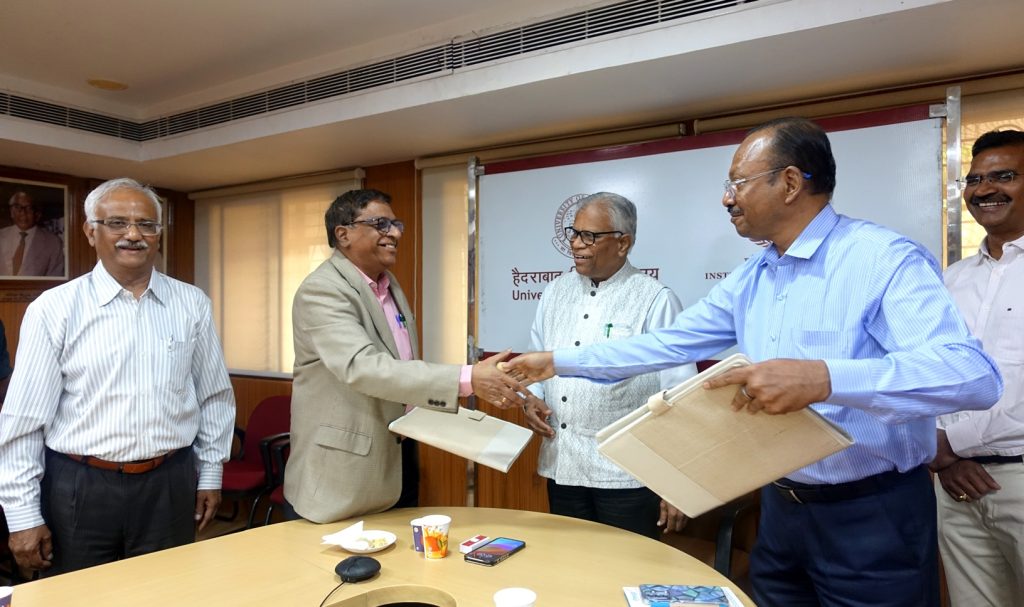 The MoU was signed by Dr. Devesh Nigam, Registrar, UoH and Dr. G. Joseph Benjamin, MD, Director, MNJ Institute of Oncology & Regional Cancer Centre, Hyderabad on February 16, 2026, in the presence of Prof. B.J. Rao, Vice-Chancellor, UoH; Prof Sabat SL, R&D Director; Prof Bramanandam Manavathi, ANRF-PAIR, Project Director and Prof. M Ghanashyam Krishna, Director-Institution of Eminence; Prof. Anand Kondapi, Dean, School of Life Sciences; Dr Raghunatha Rao, MNJ.