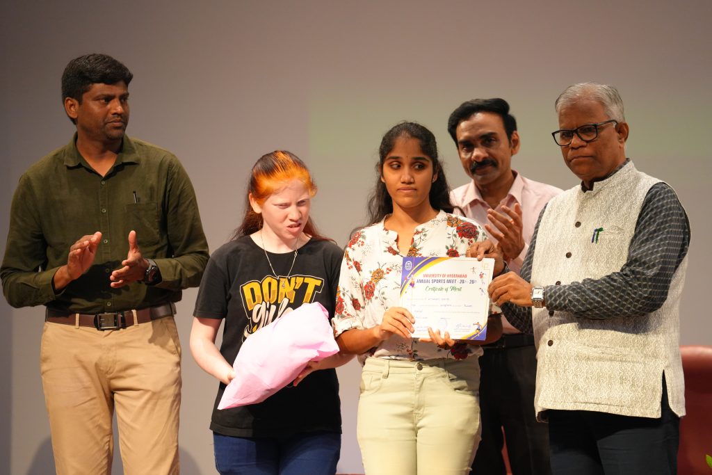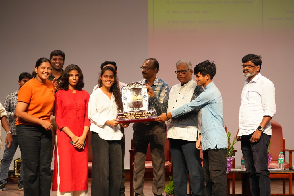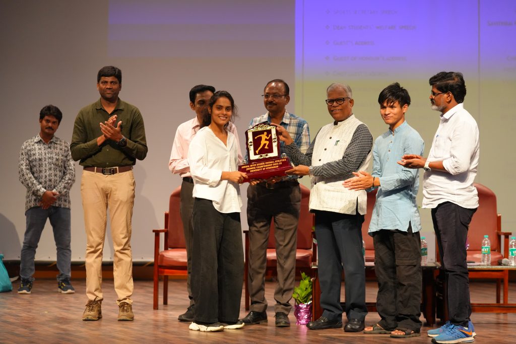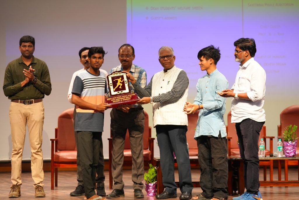 The University of Hyderabad proudly celebrated its Annual Sports Day 2025 on Thursday, May 15, 2025. The event was graced by esteemed guests, including Vice-Chancellor Prof. B. J. Rao as the Chief Guest, Registrar Dr. Devesh Nigam, Finance Officer Shri B. Srinivas, Dean Students’ Welfare Prof. V. Srinivasa Rao, In-charge Physical Education and Sports Dr. Anjeneya Swami Kare, and Students’ Union Sports Secretary Mr. Mangpithang Haokip.
